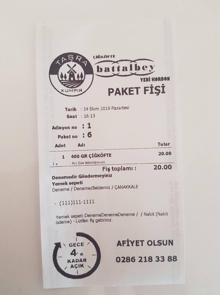 Battalbey Çiğ Köfte Yenikordon Çanakkale,Taşra Kumpir, Adisyon,Masa Takibi, Paket Servis,Yemek Sepeti Entegrasyonu, Ön Muhasebe,call id, Kasa Cepte Modülümüzle Boyacı Bilişim Hizmetleri ve Erp12 Tercih etti , Müşterimize Hayırlı olsun Başarılar Dileriz. SİZDE BİZİMLE ÇALIŞMAK İSTERSENİZ İLETİŞİME GEÇEBİLİRSİNİZ ERP12YAZILIM: 0553 371 98 30